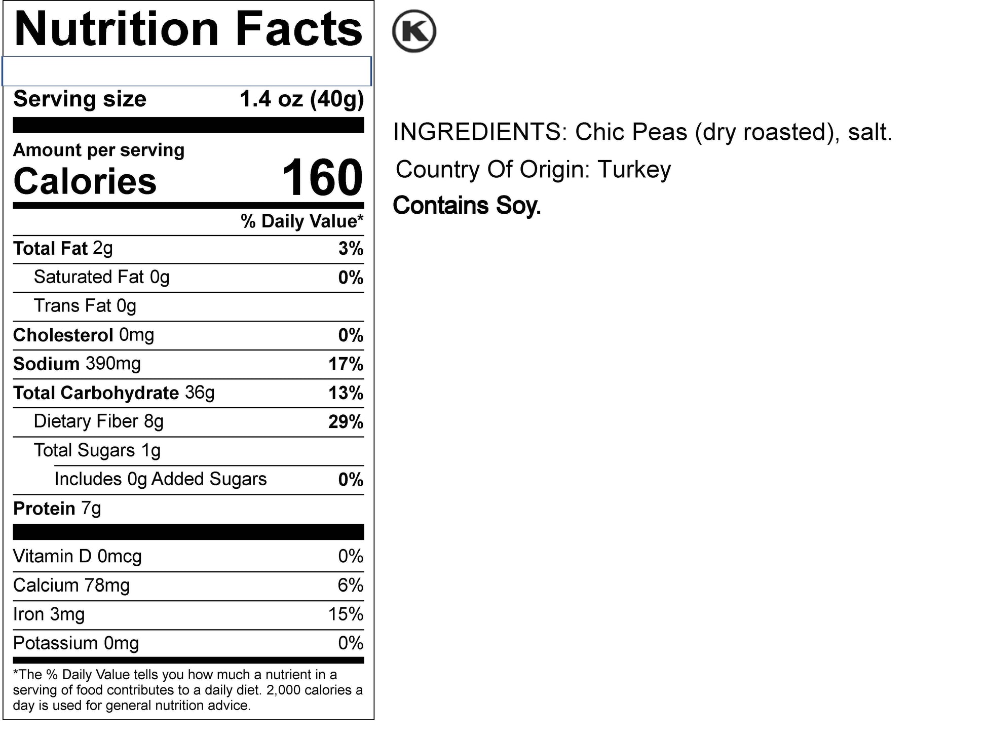 Roasted Salted Chickpeas (Garbanzo Beans)