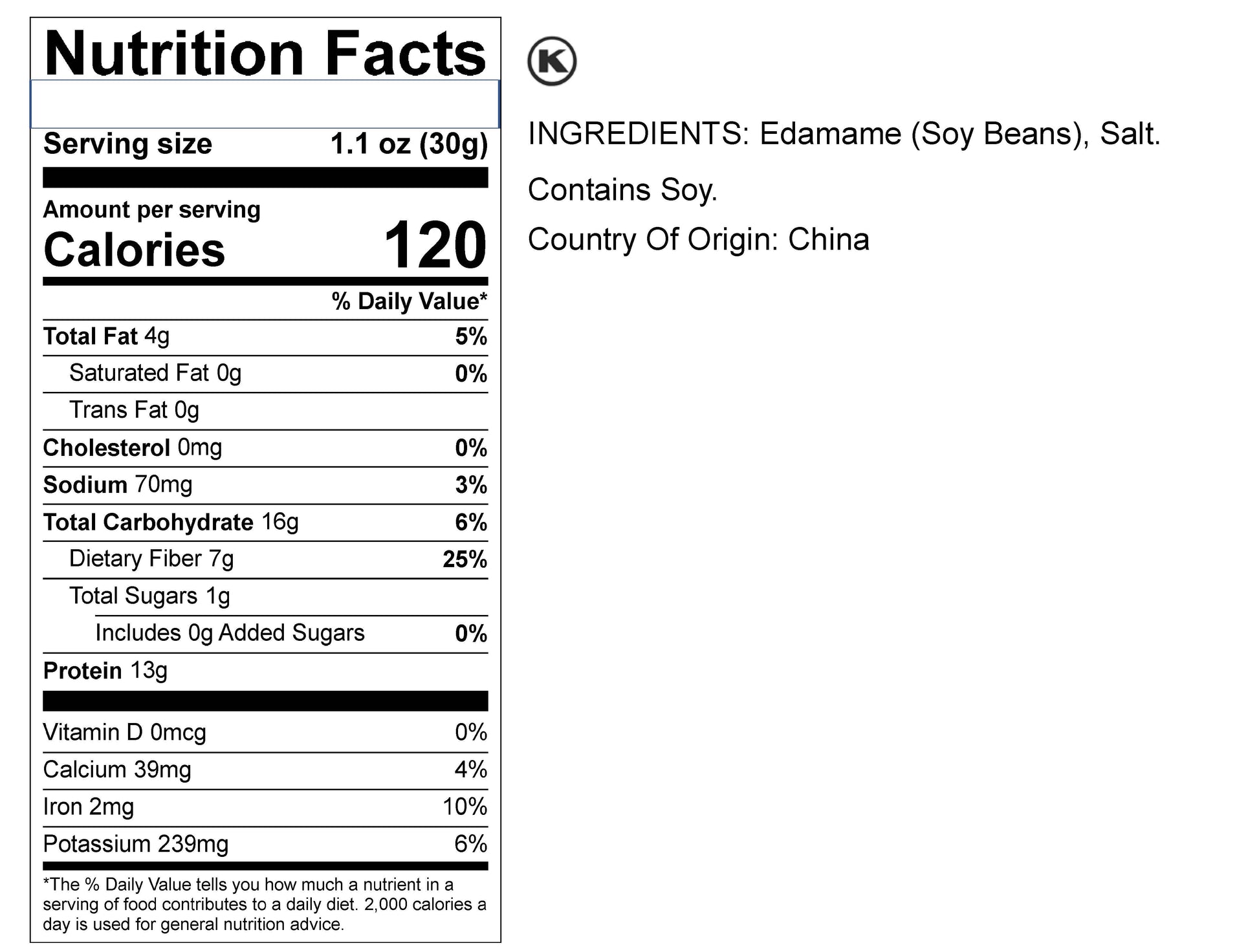 Edamame are soy beans picked in the initial stages of ripening, and come packed with a concentrated serving of healthy nutrients. Soy beans have their roots in the Far East, where they have been grown for thousands of years. And we pay homage to this time-tested food by sourcing the best edamame beans from China to give you superior quality you'll love. We then masterfully dry roast the beans and add a light touch of salt, creating a treat that tastes delicious in salads and makes a great snack to always have in the pantry. Dry roasted and salted edamame is nutrient-rich, containing minerals, vitamins, antioxidants, heart-healthy fats and an exceptional amount of protein in every serving. In fact, similar to animal protein, these green soybeans contain all the essential amino acids.