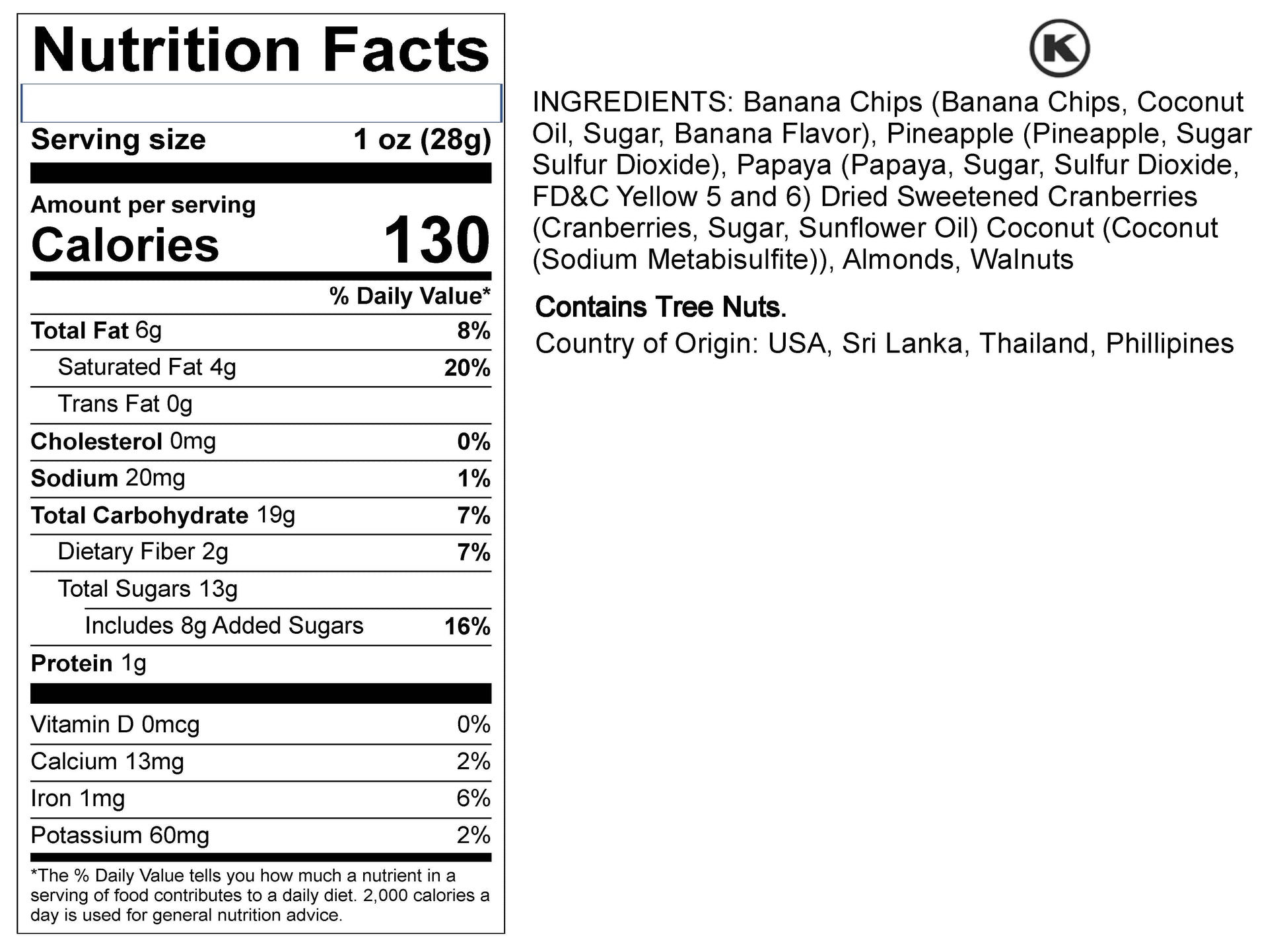 Our High Energy Trail Mix is a unique and satisfying blend of crispy banana chips, dried sweet cranberries, tangy pineapples, tropical papaya, coconut, and nutritious tree nuts. Project Verified Gluten-Free, Vegan, Certified Kosher. Our High Energy trail mix is perfect for on-the-go snacking. You can also top our delicious trail mix on your salad, oatmeal, or yogurt. Make Sincerely Nuts a part of your next trip!