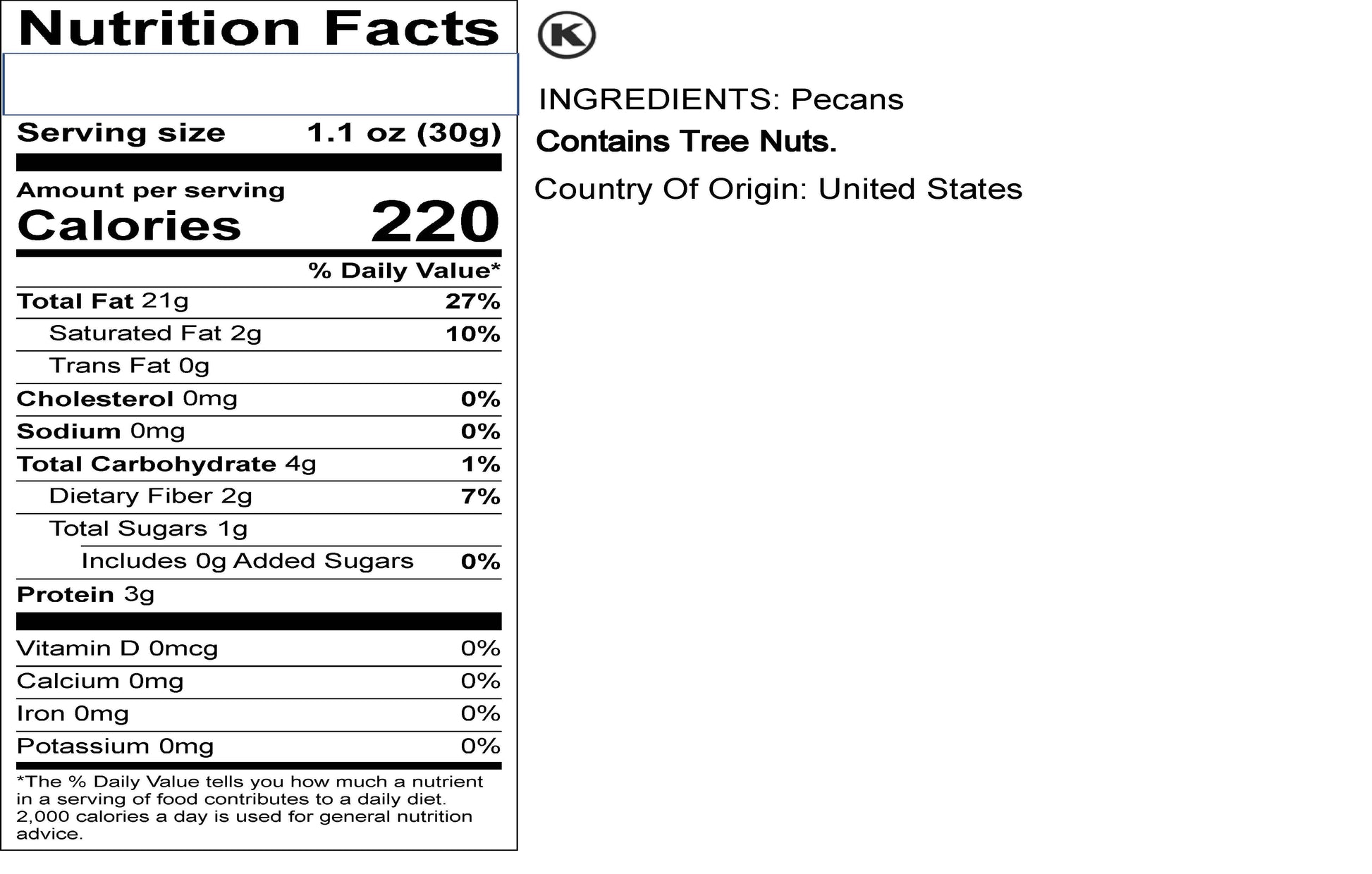 Our shelled raw pecans combine a sweet, buttery flavor with an irresistible crunch, making for a treat you'll never get tired of. We take the finest pecans in the USA and carefully remove the shells, giving you the convenience to whip up your favorite treats right out of the bag. You can crush some raw pecan butter, bake the nuts into pastries, or sprinkle them on your desserts or morning oatmeal. And pecans are quite the healthy snack too! They were a staple of the Native Americans' diet, reputed for their rich nutrient content. Every serving contains heart-healthy fats, antioxidants, minerals, vitamins, fiber and excellent levels of vitamin E.